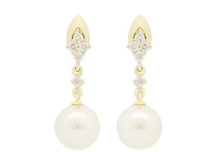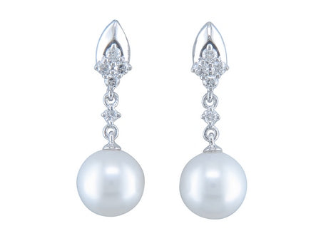 14K White Gold Pearl with Diamond Accent Dangle Earring