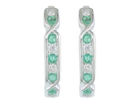 14K White Gold Emerald & Diamond Twisted Hoop Earring