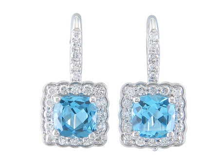 10K White Gold Blue Topaz with Scalloped Diamond Halo Earring