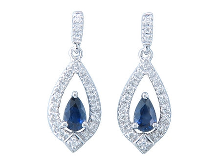 14K White Gold Sapphire with Diamond Accent Dangle Earring