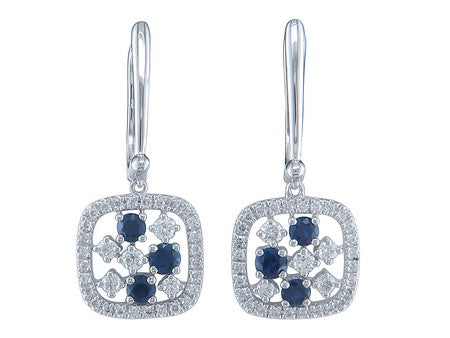 18K White Gold Abstract Sapphire & Diamond with Diamond Halo Dangle Earring