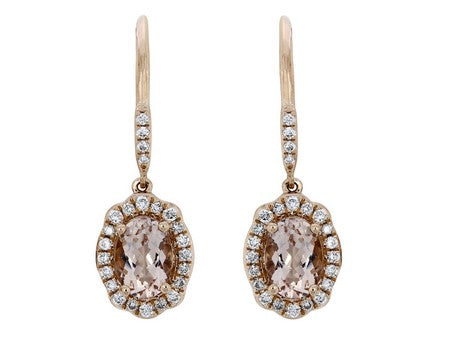 18K Rose Gold Morganite with Diamond Halo Dangle Earring