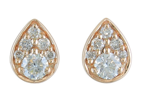 14K Rose Gold Pear Shaped Bezel Set Diamond Cluster Earring