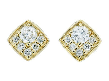 14K Yellow Gold Bezel Set Diamond Cluster Earring