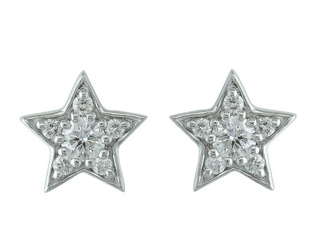 14K White Gold Star Bezel Set Diamond Cluster Earring