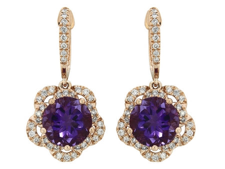 14K Rose Gold Amethyst with Vintage Diamond Halo Earring