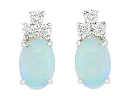 14K White Gold Opal & Diamond Accent Earrings, Not Eligible For Memo