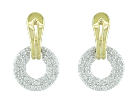 14K Two Tone Yellow & White with Pave Set Diamond Circle Earring