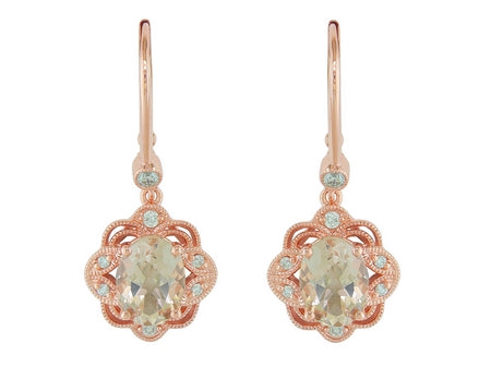 14K Rose Gold Morganite with Vintage Diamond Halo Earring