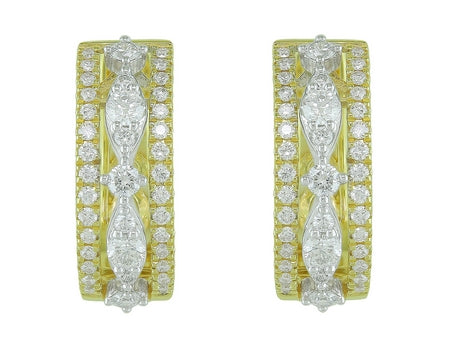 14K Two Toned Yellow and White Gold Diamond Hoop Earring