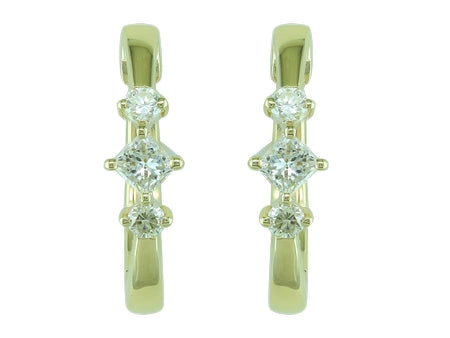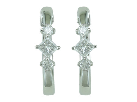14K White Gold Diamond Three Stone Hoops