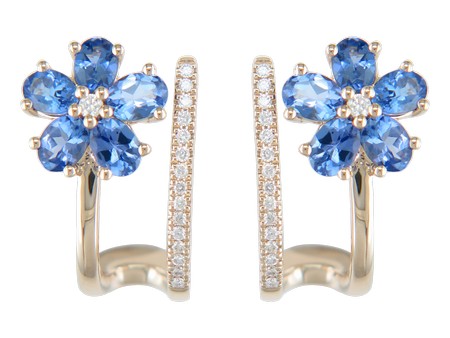 14K Yellow Gold Tanzanite & Diamond Flower Huggie Earrings