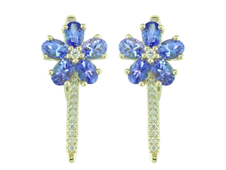 14K Yellow Gold Tanzanite & Diamond Flower Hoop Earrings