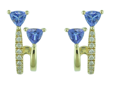 14K White Gold Tanzanite & Diamond Huggie Earrings
