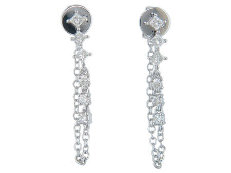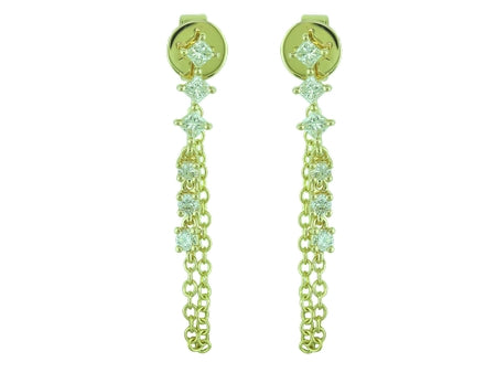 14K Yellow Gold Diamond Chain Huggie Earrings
