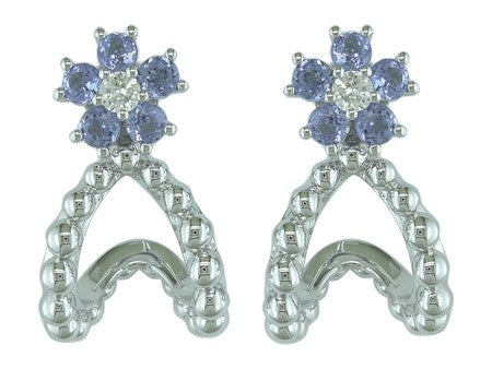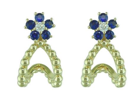 14K Yellow Gold Sapphire & Diamond Flower Huggie Earrings
