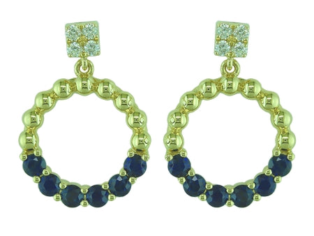 14K Yellow Gold Sapphire & Diamond Circle Earrings