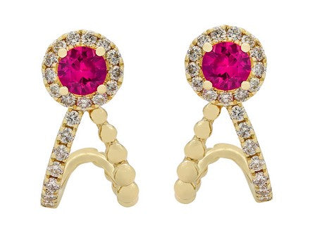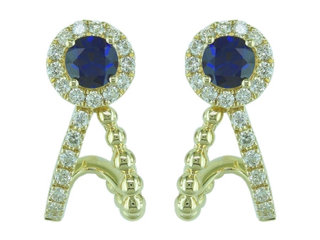 14K Yellow Gold Sapphire & Diamond Huggie Earrings