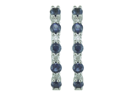 14K White Gold Sapphire & Diamond Hoop Earrings