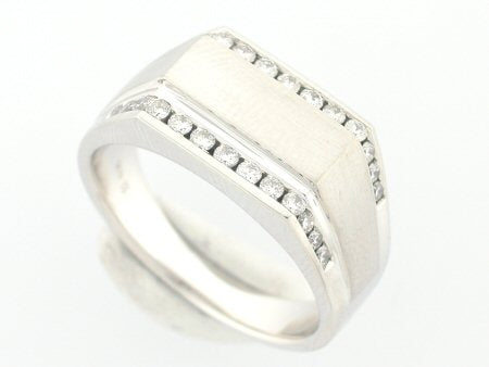 14K White Gold Brushed Finished Diamond Gent's Ring