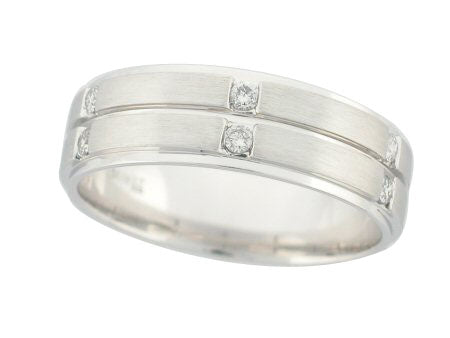 14K White Gold Brushed Finished Diamond Gent's Ring