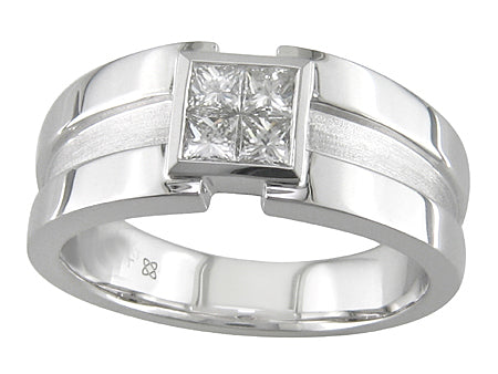 14K White Gold Quad Set Diamond Center Gent's Ring