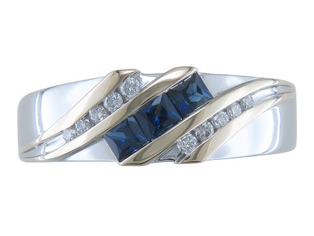 14K Yellow & White Gold Sapphire & Diamond Gent's Ring