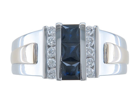 14K Yellow & White Gold Sapphire & Diamond Gent's Ring