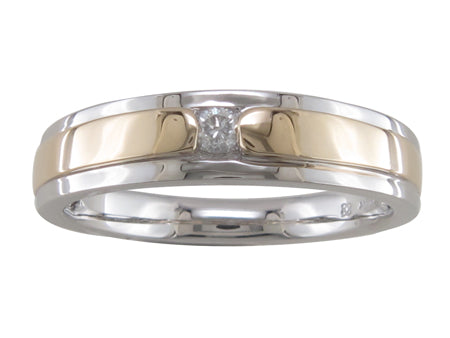 14K Yellow & White Gold Band Diamond Gent's Ring