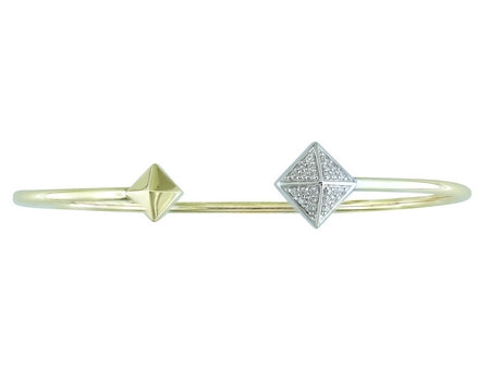 14K Yellow & White Gold with Square Shaped Stations Set with Diamonds Flex Cuff Bracelet