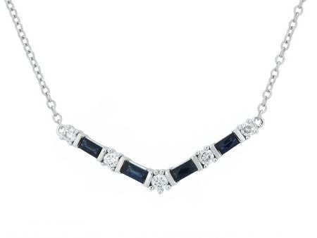 14K White Gold Sapphire & Diamond Chevron Bar Necklace