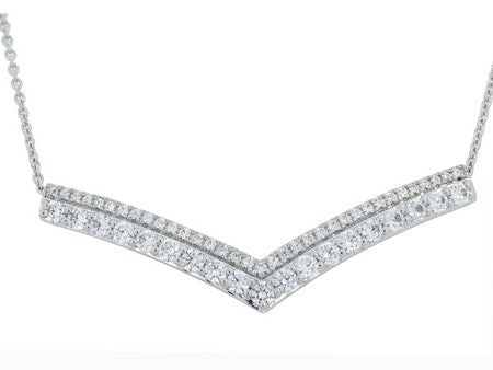 14K White Gold Diamond Chevron Bar Necklace