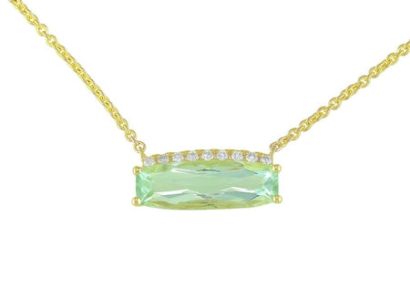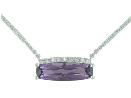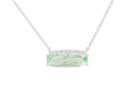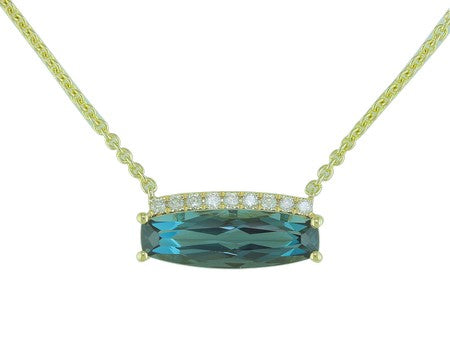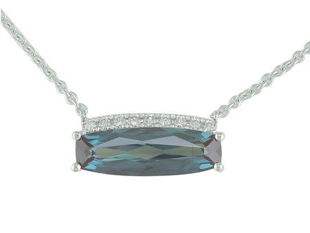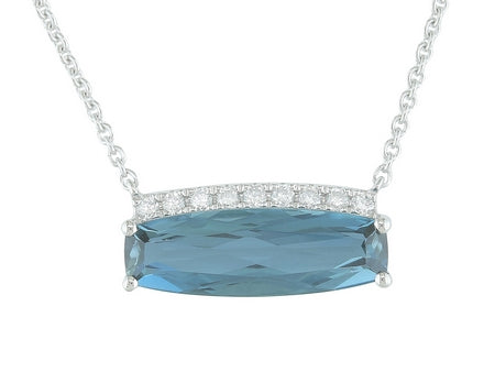 14K White Gold Elongated Elegance East West Set London Blue Topaz with Diamond Accent Necklace
