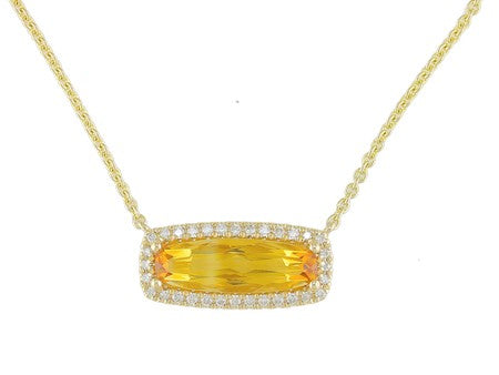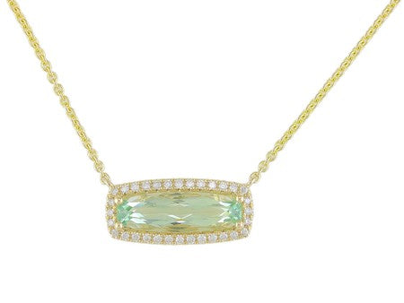 14K White Gold Elongated Elegance East West Set Amethyst with Diamond Accent Necklace