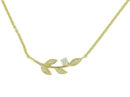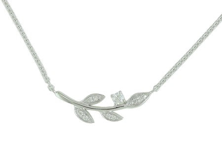 14K White Gold Diamond Leaf Necklace
