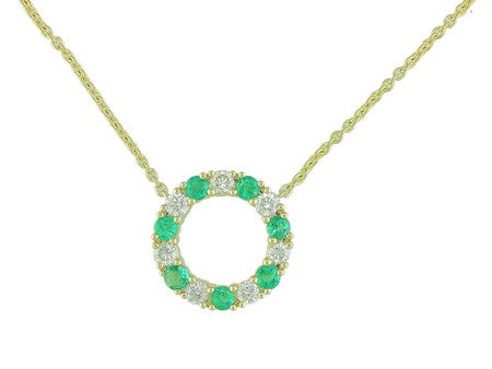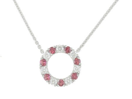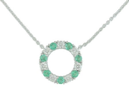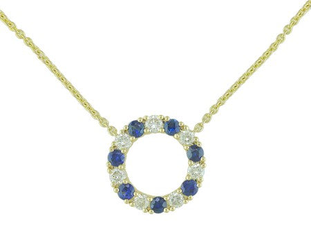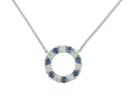 14K White Gold Sapphire & Diamond Open Circle Necklace