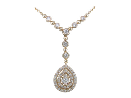 14K Yellow Gold Diamond Double Halo Drop Necklace
