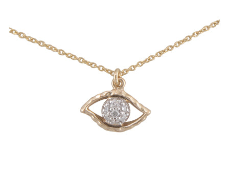 14K Rose & White Gold Diamond Evil Eye Necklace