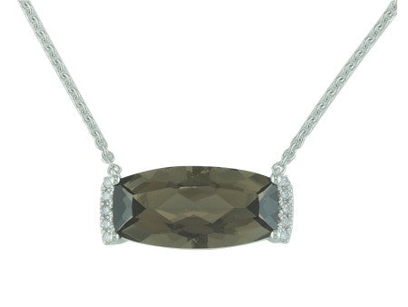 14K White Gold East West Set Smokey Quartz with Diamond Accent Necklace