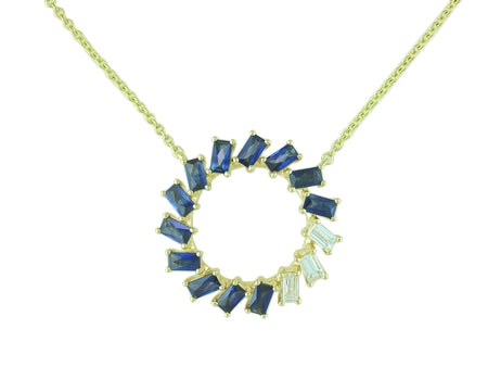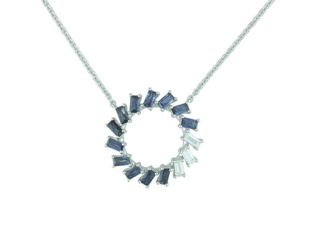 14K White Gold Sapphire & Diamond Shattered Circle Look Necklace