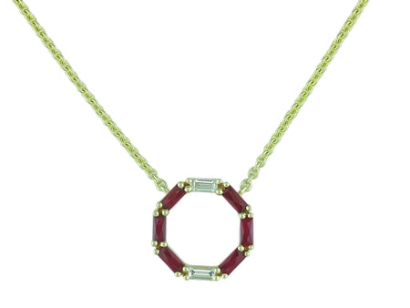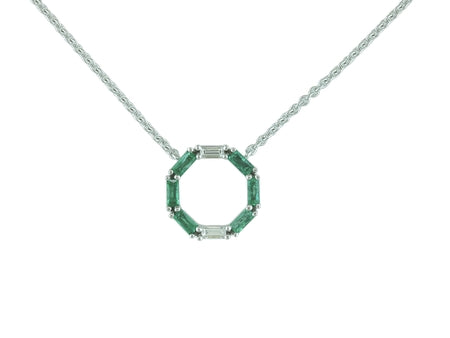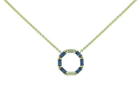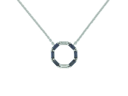 14K White Gold Sapphire & Diamond Circle Necklace
