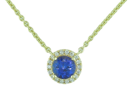 14K Yellow Gold Tanzanite & Diamond Halo Necklace