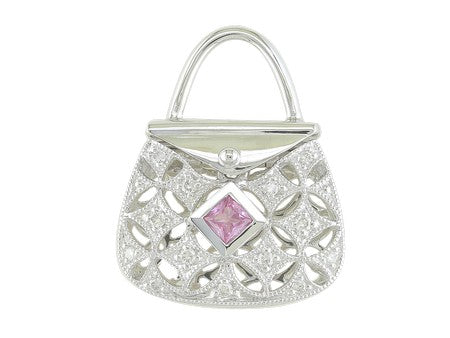 14K White Gold Pink Sapphire & Diamond Purse Fashion Pendant