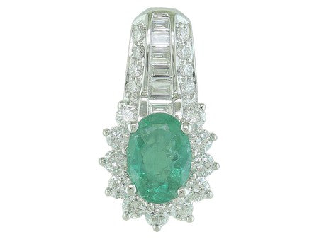 14K White Gold Emerald with Diamond Accent Pendant