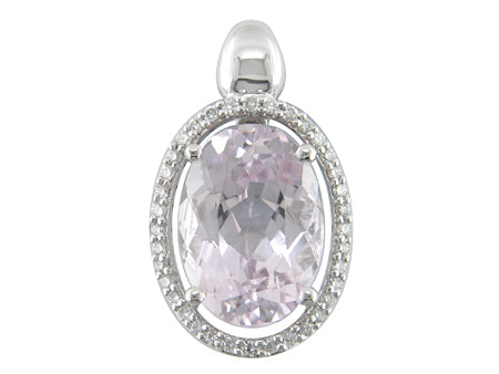 18K White Gold Kunzite with Diamond Halo Pendant