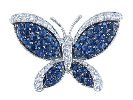 14K White Gold & Black Rhodium Sapphire & Diamond Butterfly Pendant