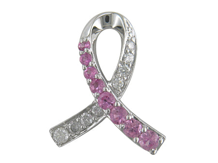 14K White Gold Pink Sapphire & Diamond Ribbon Pendant