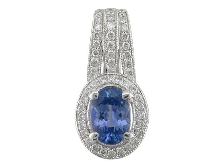 14K White Gold Tanzanite with Diamond Halo Pendant