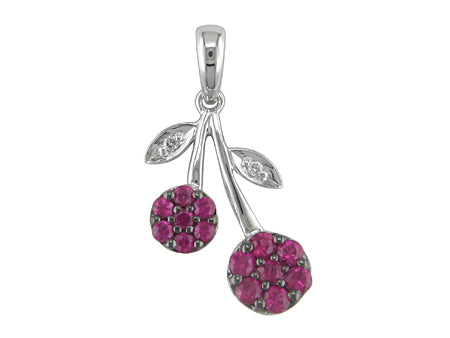 14K White Gold with Black Rhodium Ruby with Diamond Accent Cherry Pendant
