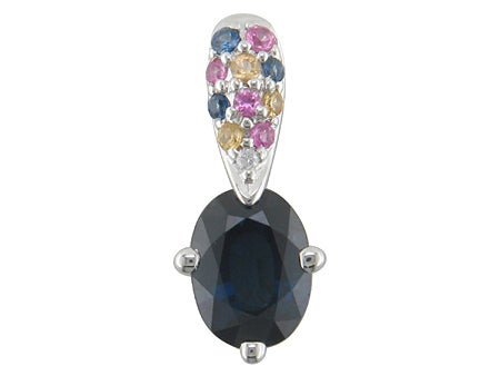 14K White Gold Sapphire with Diamond & Blue, Yellow, & Pink Sapphire Accent Pendant